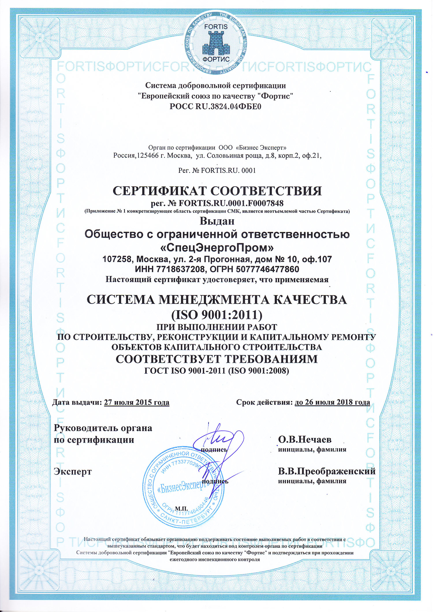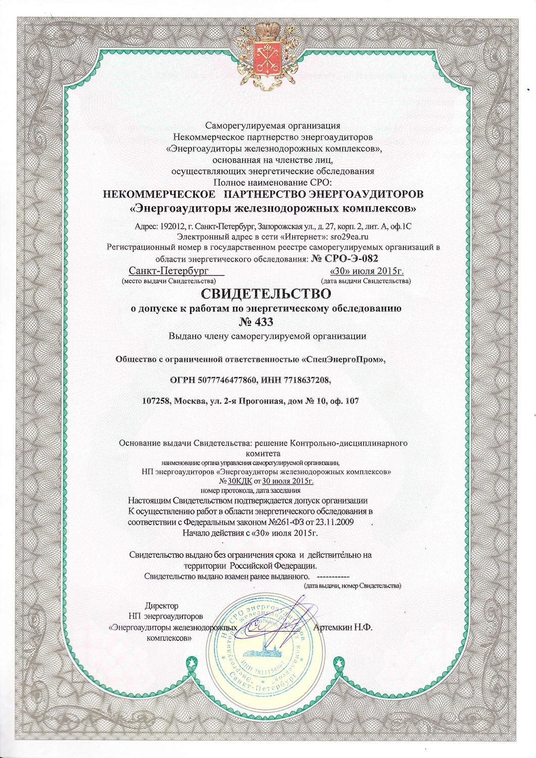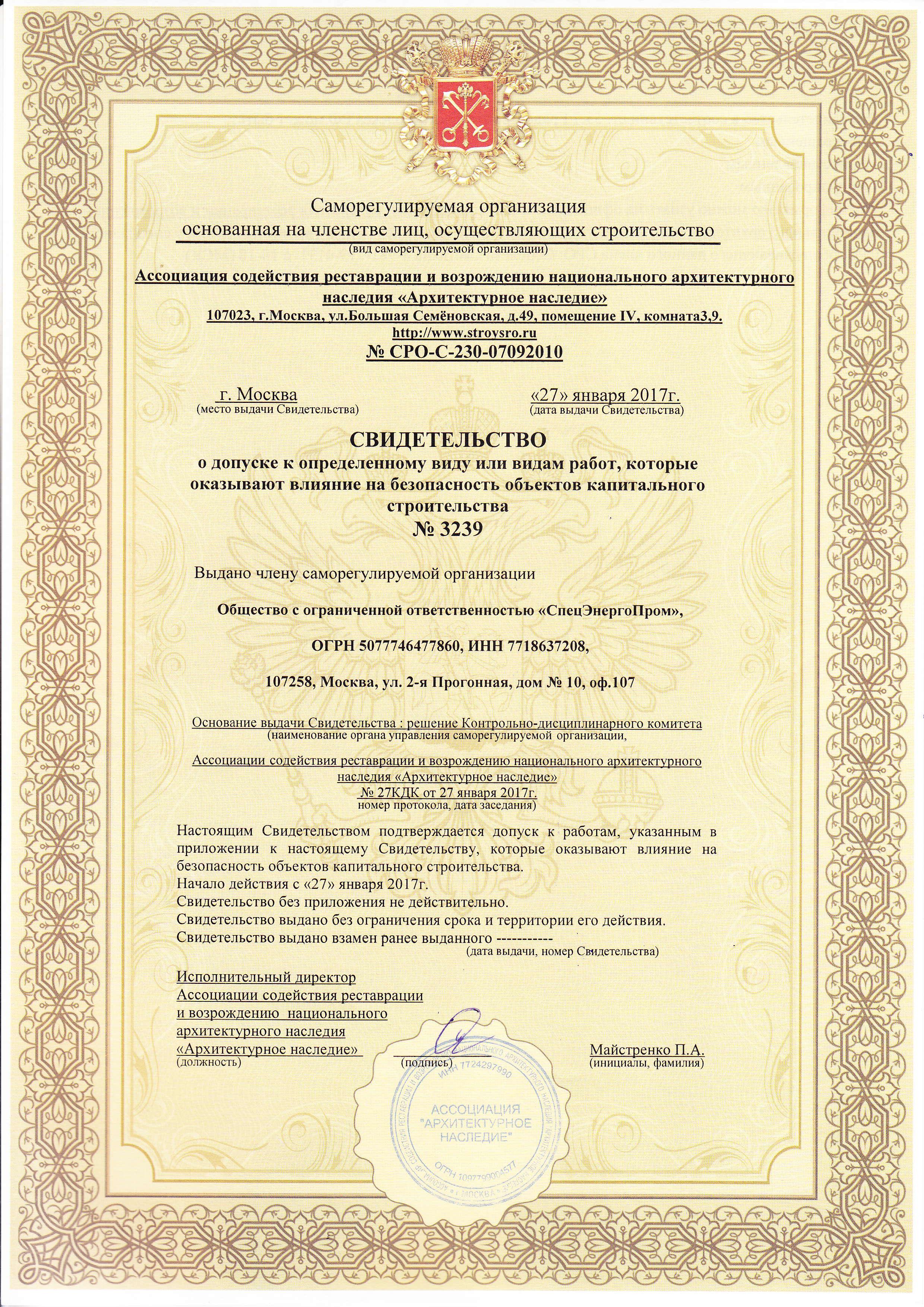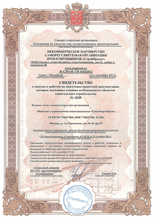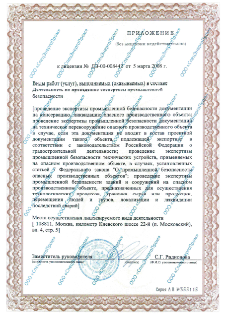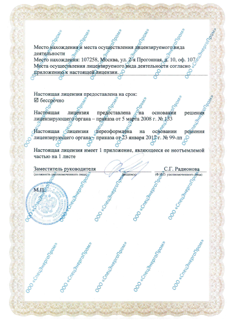 | Полное наименование лицензиата | Общество с ограниченной ответственностью «СпецЭнергоПром» | |